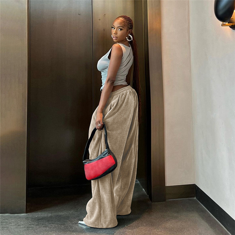 - High-Waist Wide-Leg Design:The high-waist wide-leg design of these pants provides a flattering silhouette, accentuating your natural curves.
